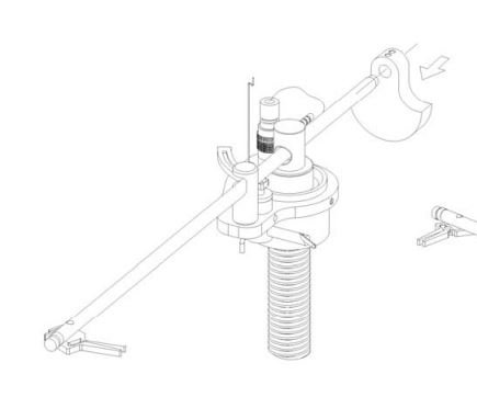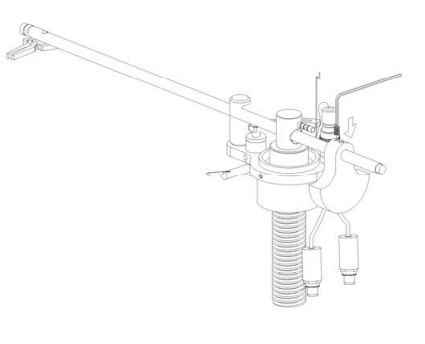 10. Feed the anti-skate weight through the anti-skate support wand and secure it to one of the three locations (according to the anti-skating adjustment for your cartridge) on the shaft at the top of the tonearm bell.