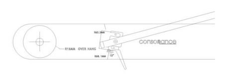 9. Align cartridge for overhang (16mm)and offset angle using the Consonance Cartridge alignment gauge. Once done, re-check tracking force.